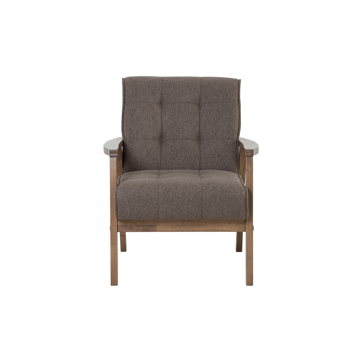 Tucson 1 seater sofa in Cocoa colour, Chestnut colour Dimity fabric. The Tucson 1 Seater Sofa offers rustic charm with a refined mid-century modern influence. Crafted with a solid wooden frame, it ensures durability and everyday practicality. The cushioned seat and back provide inviting comfort for relaxation or reading. Its compact form makes it suitable for small apartments, lounge areas, or cozy corners. The design strikes a balance between simplicity and warmth, enhancing its adaptability in different settings. A stylish single seater that adds comfort and character to any room.