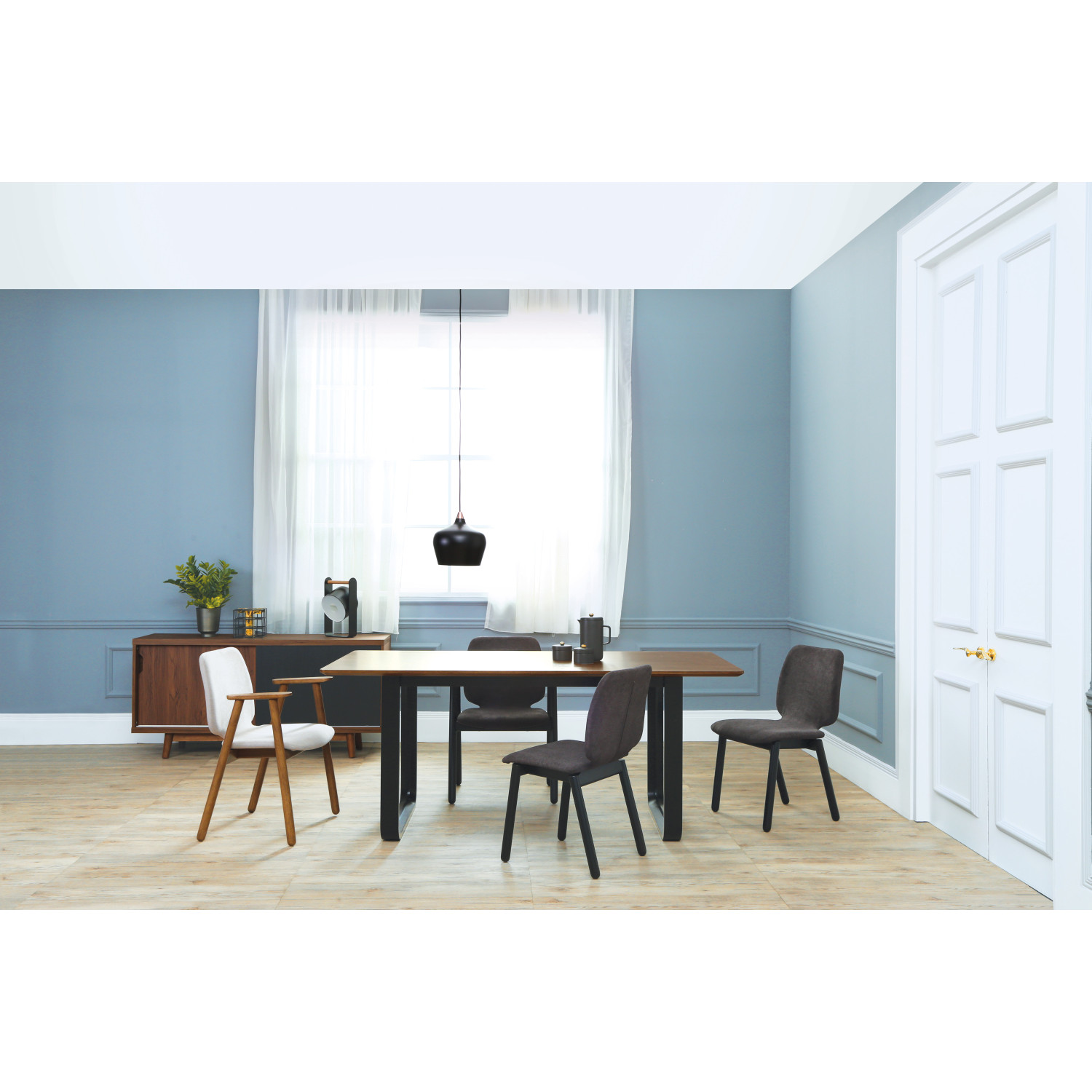 Ulmer 1.8M dining table in Black colour leg, Oak laminate top. The Ulmer Dining Table blends Mid-Century Modern and contemporary design. Built with sturdy black oak legs and a warm oak-finished melamine top, it delivers a stylish yet durable centerpiece. Its spacious rectangular form makes it ideal for modern family dining.