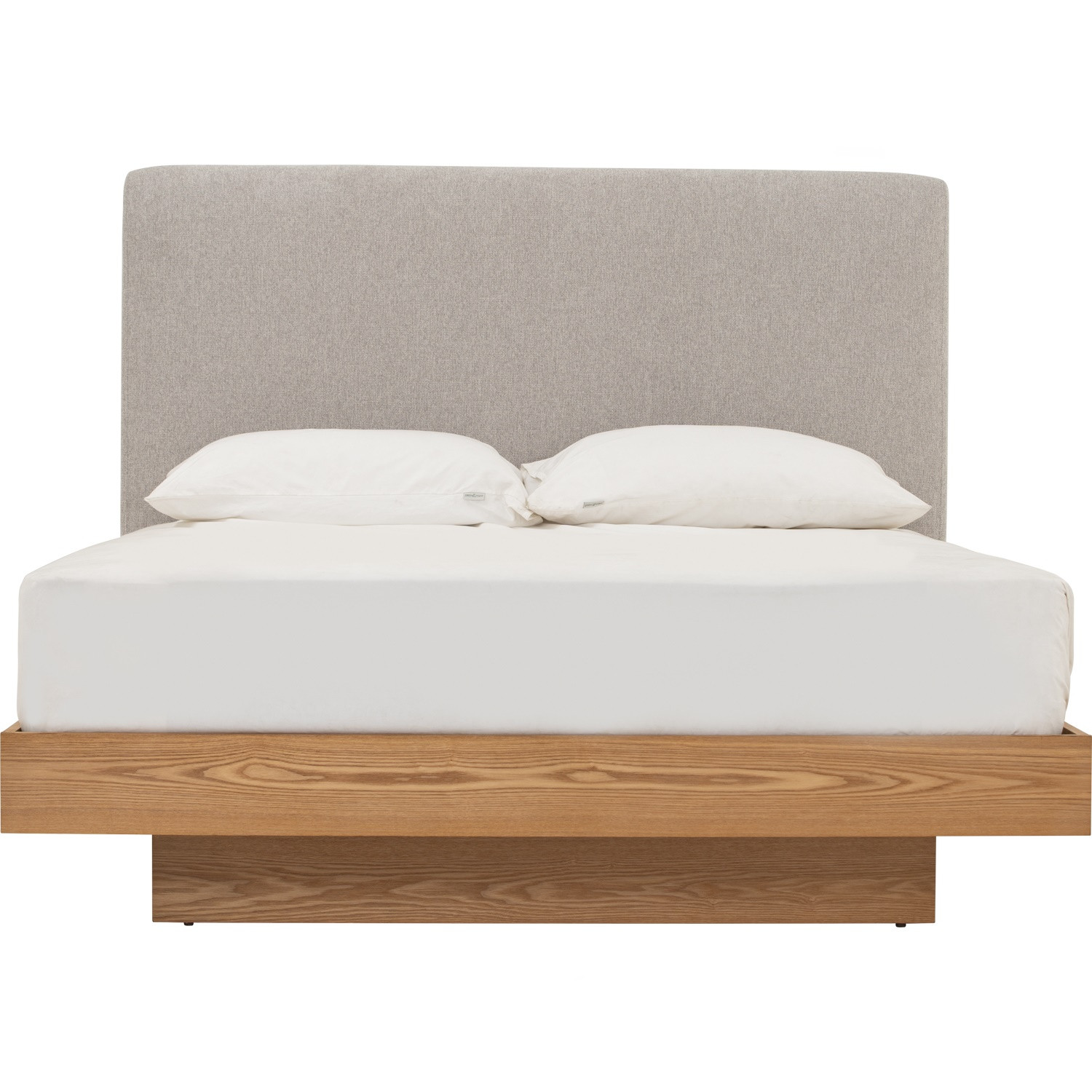 Yume Queen Bed in Natural colour body, Greymist colour Belfast fabric (Fit mattress: 1530x1930mm – Bed Panel). The Yume Queen Bed with bed panel reflects Mid-Century Modern influence with rustic softness. Its frame, built from MDF and ash veneer, provides reliable stability and timeless appeal. The headboard in Greymist Belfast fabric introduces an elegant, tactile finish. The natural oak base enhances the bed’s organic character, creating balance and warmth. Sized to fit a 1530 x 1930mm mattress, it is both practical and comfortable. Its versatile design suits both minimalist and rustic interiors effortlessly. Yume delivers a blend of natural elegance and everyday comfort.